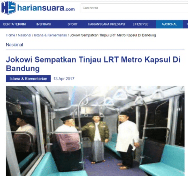- https://www.hariansuara.com/news/istana-kementerian/5575/jokowi-sempatkan-tinjau-lrt-metro-kapsul-di-bandung